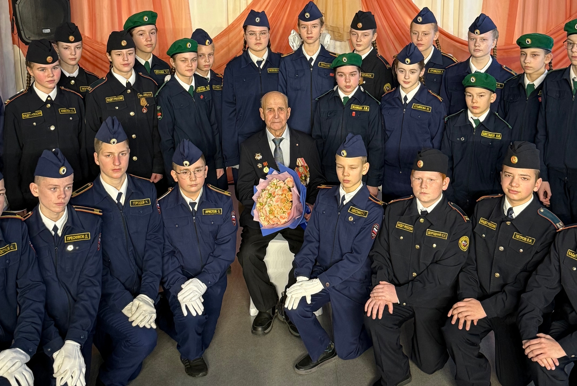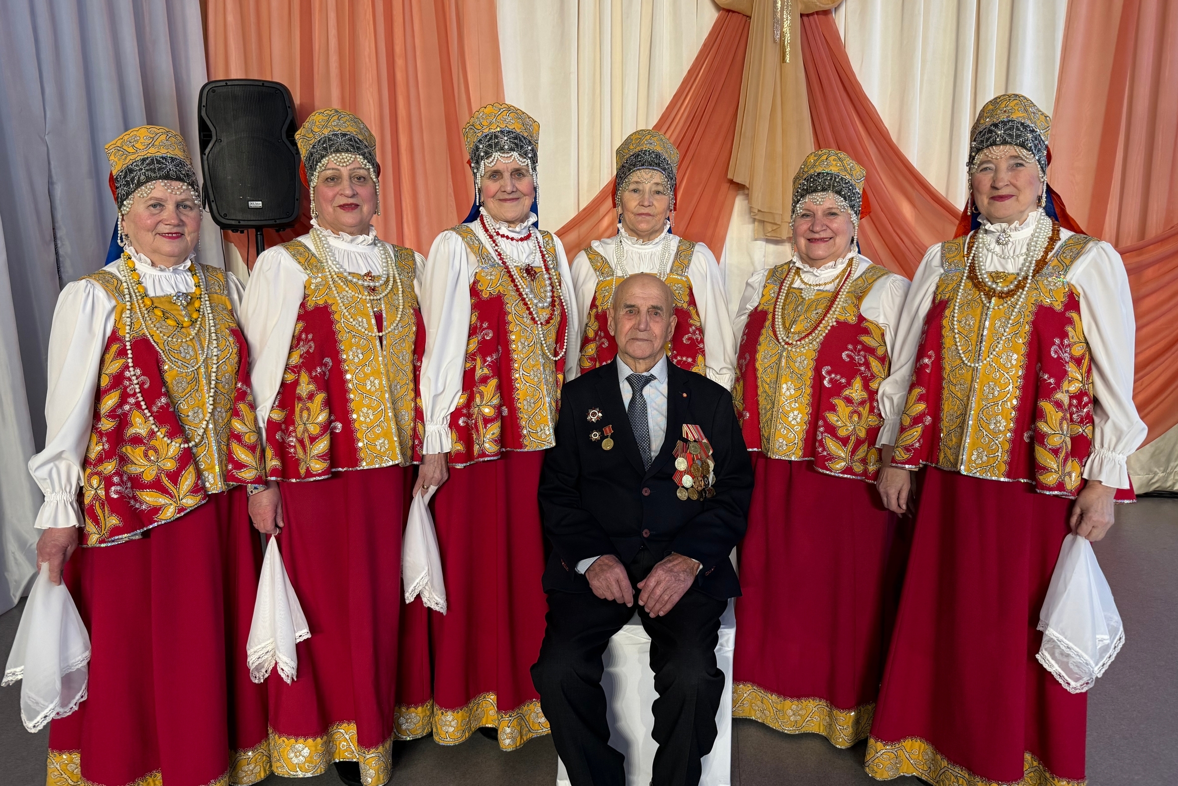На торжественном вечере звучало много поздравлений от земляков, в том числе педагогов и кадетов Пинежской средней школы, в которой Михаил Яковлевич проводит уроки по патриотическому воспитанию. Подарков юбиляру стало выступление народного хора ветеранов, активным участником которого долгие годы был Михаил Тюряпин. А в конце вечера гости вместе с фронтовиком спели легендарные «Катюшу» и «День Победы».