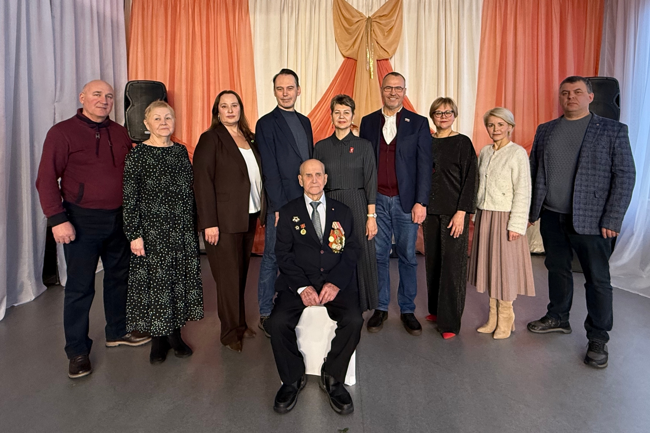 На торжестве юбиляра от имени Губернатора Архангельской области Александра Цыбульского поздравил заместитель министра строительства и архитектуры региона Алексей Слепцов. Он передал ветерану памятный подарок и поздравительный адрес с теплыми словами признательности за его подвиг и труд.
